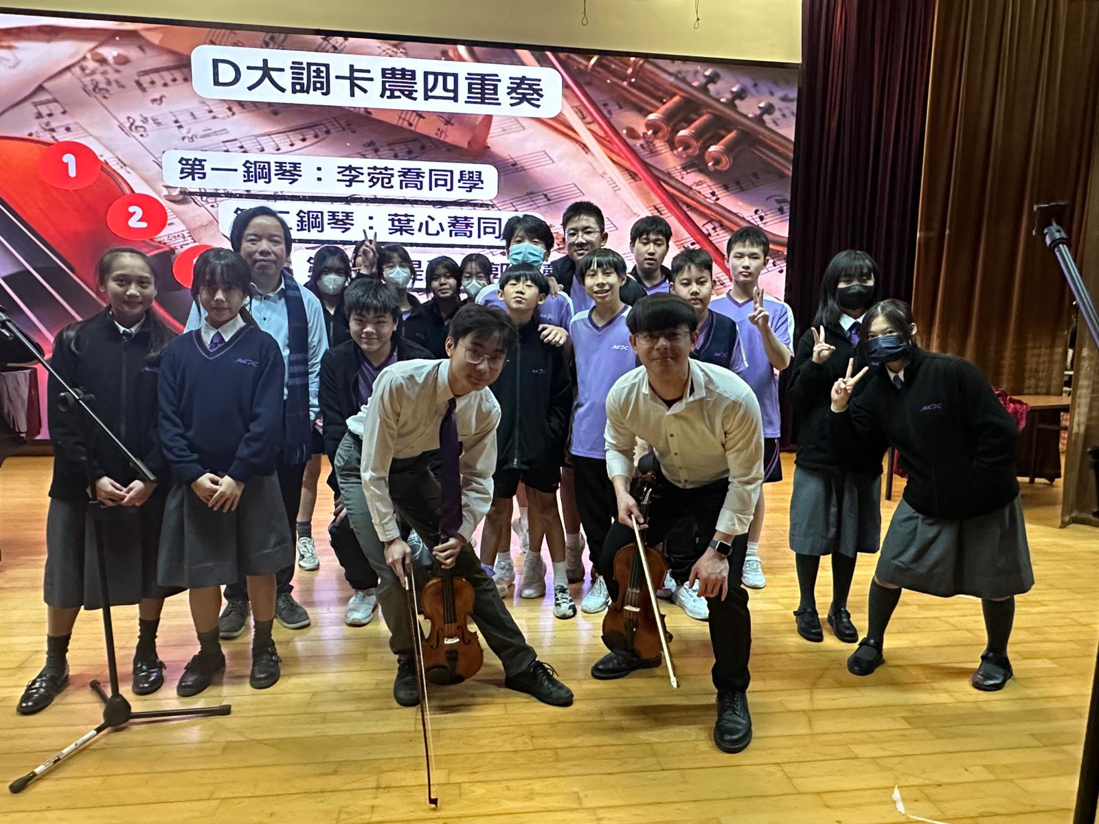 昨天(10/2星期二)舉行了本年度第三次藝術沙龍活動,繼介紹了文藝復興藝術三傑中的達文西及米開朗基羅後,今次介紹的藝術家是一位作曲家–約翰·帕海貝爾。約翰·帕海貝爾是巴洛克時期德國作曲家,他最著名的作品是《約翰·帕海貝爾卡農》,卡農在字面上是「輪唱」的意思,今次由音樂科張允樂老師,帶領2A班李苑喬、2A葉心蕎及4A郭逸聲同學進行四重奏演出,同學有幸可以現場欣賞到此名曲,相信此體驗能提升同學對音樂藝術的認識與鑑賞力