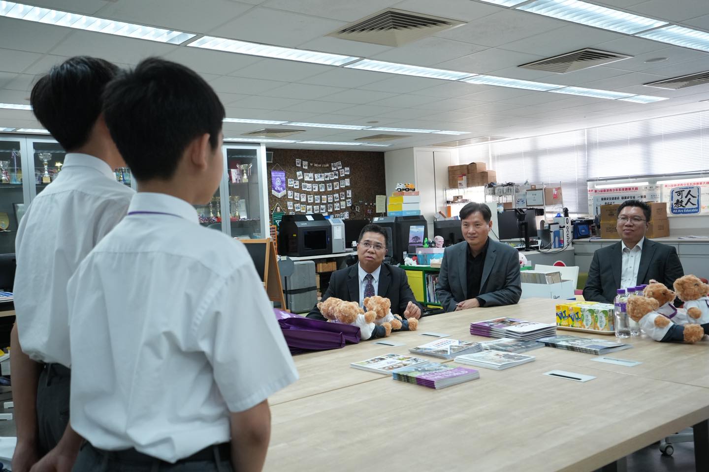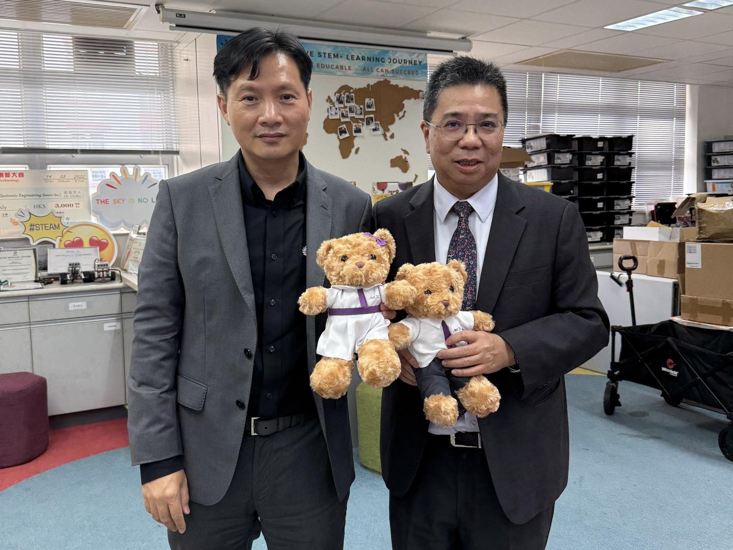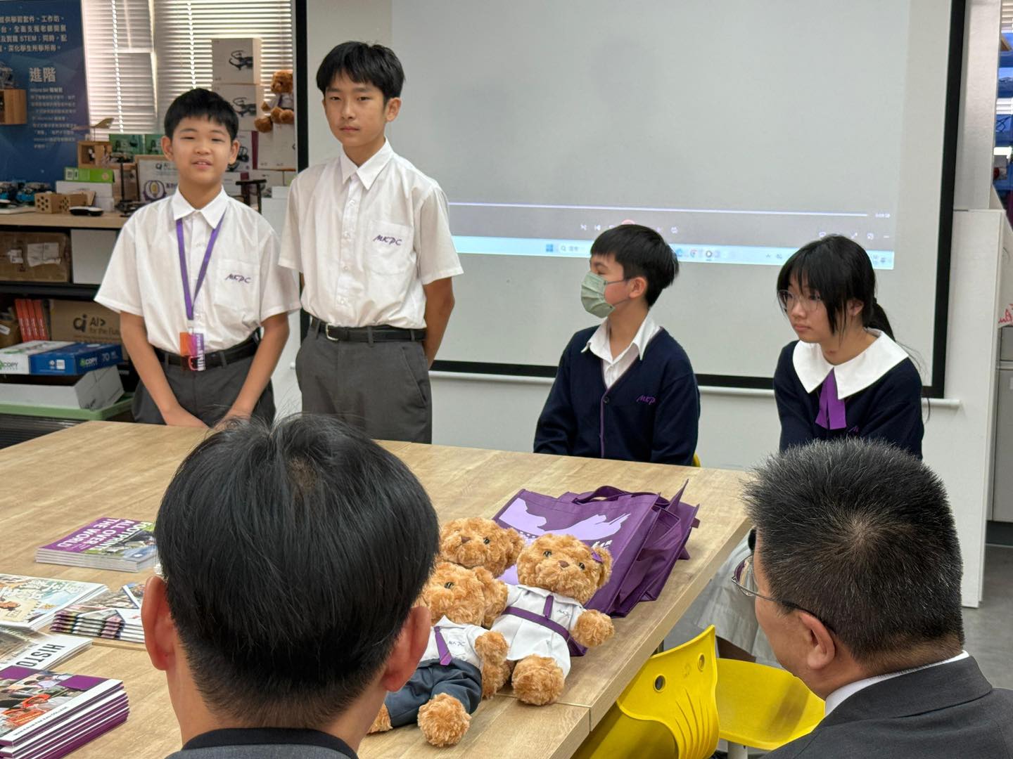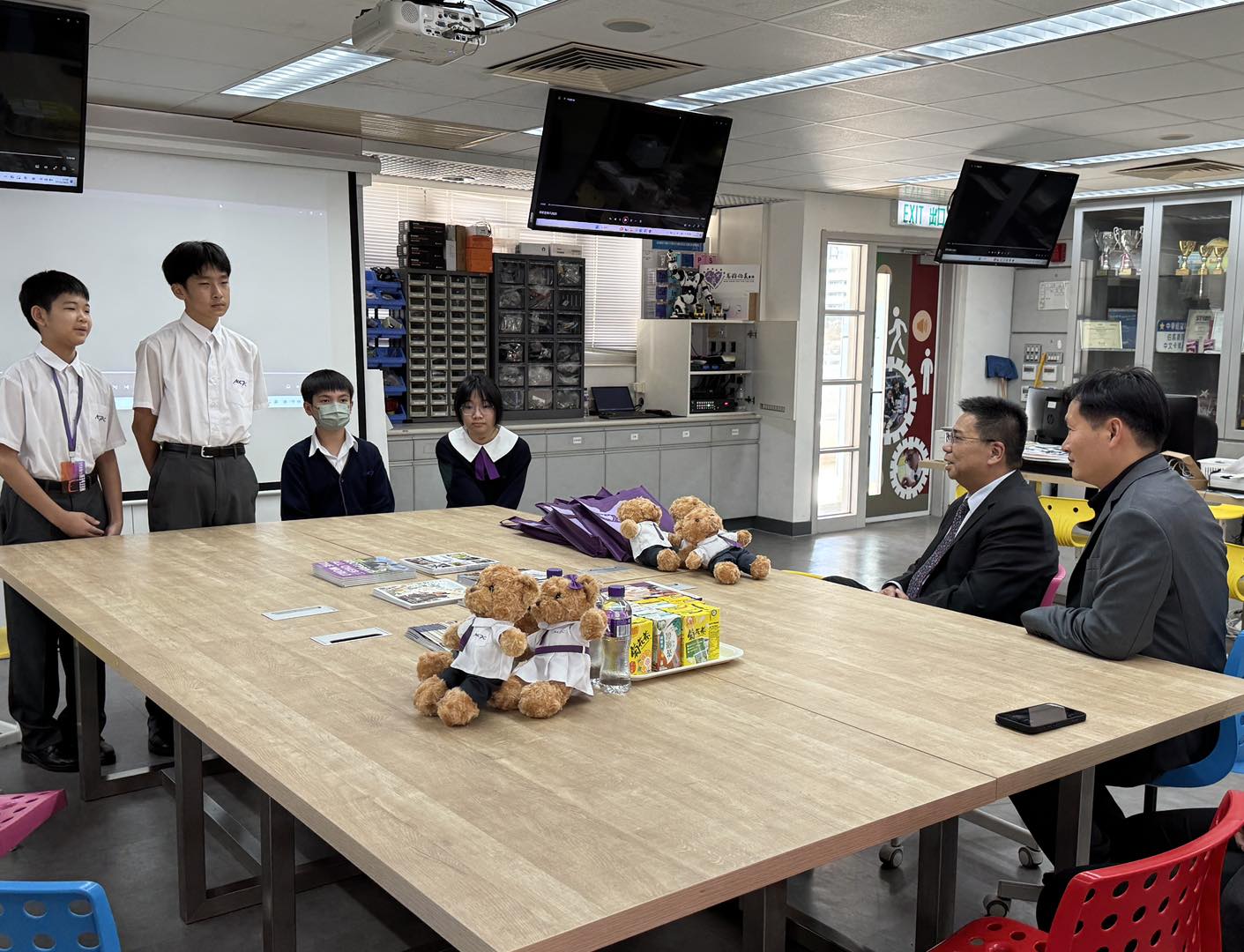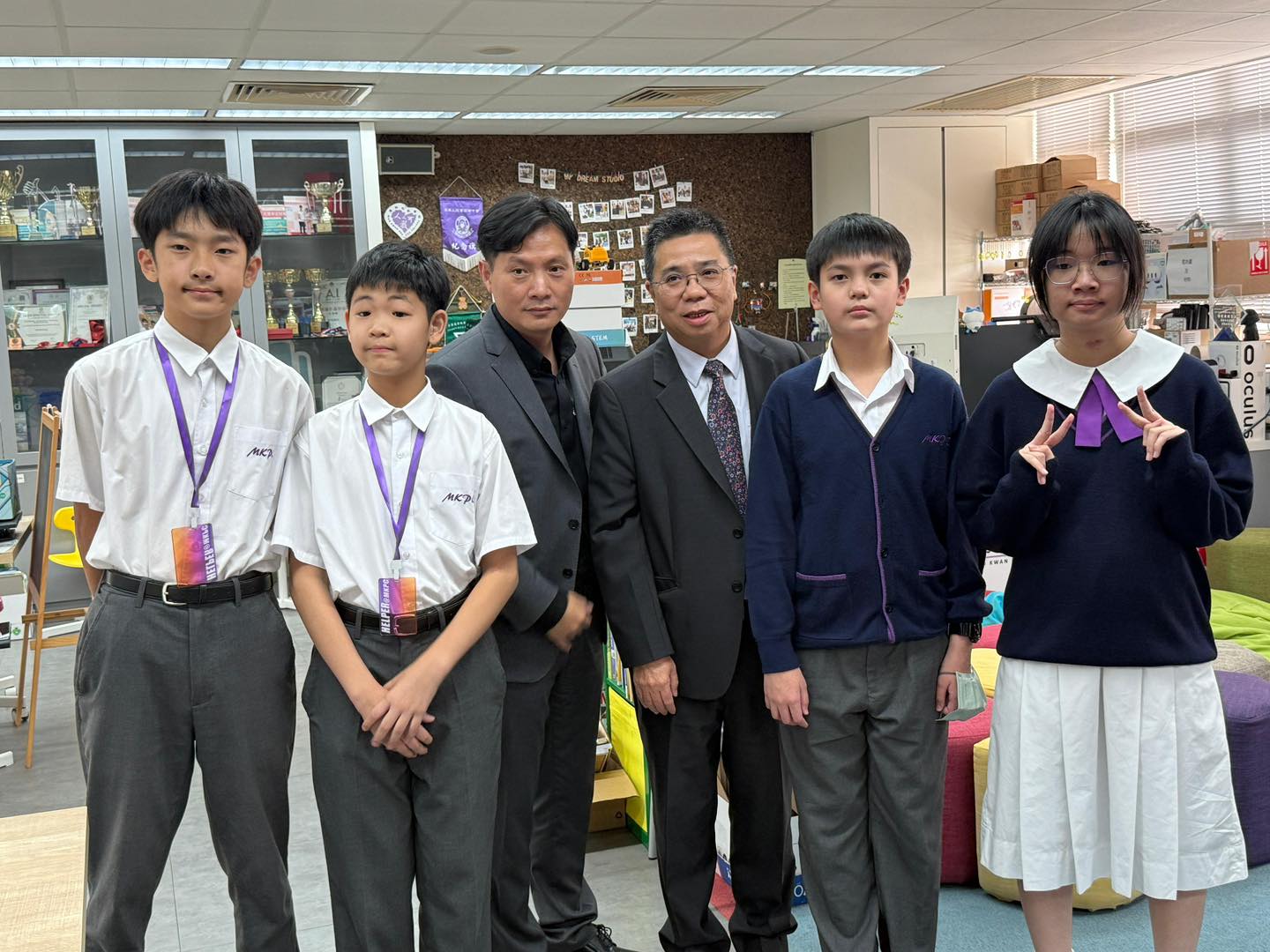 Today, Mr. Chui Chi Kuen, the principal of Kwong Ming Ying Loi School, led his colleagues to visit our school, enhancing the communication and mutual learning between two schools. During the exchange, we explored the unique features of our curriculum, the design of our STEAM courses, and the application of campus facilities. Additionally, alumni shared their learning experiences and campus life with Principal Chui, providing him with a deeper understanding of the growth and development of graduates at our school.